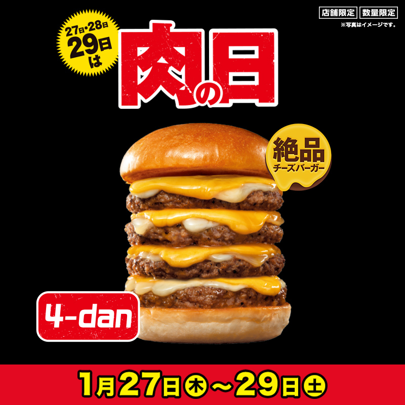 ロッテリア どうも 絶品 チーズ バーガー 4 Dan です 肉の日https Tco 8hx 22 01 28 俺ノランキング